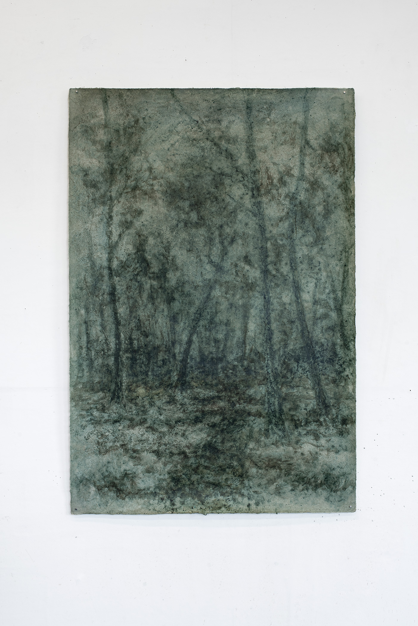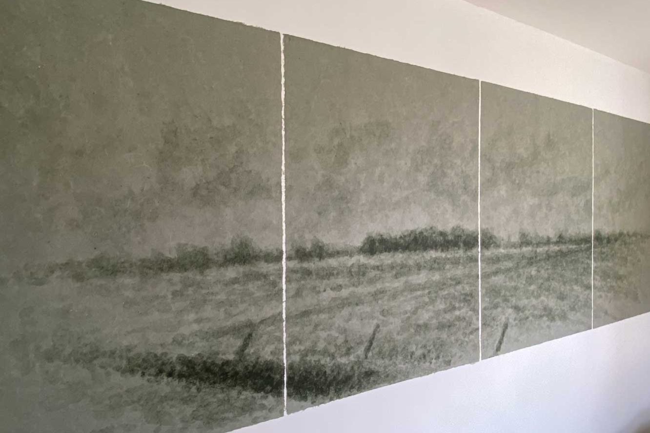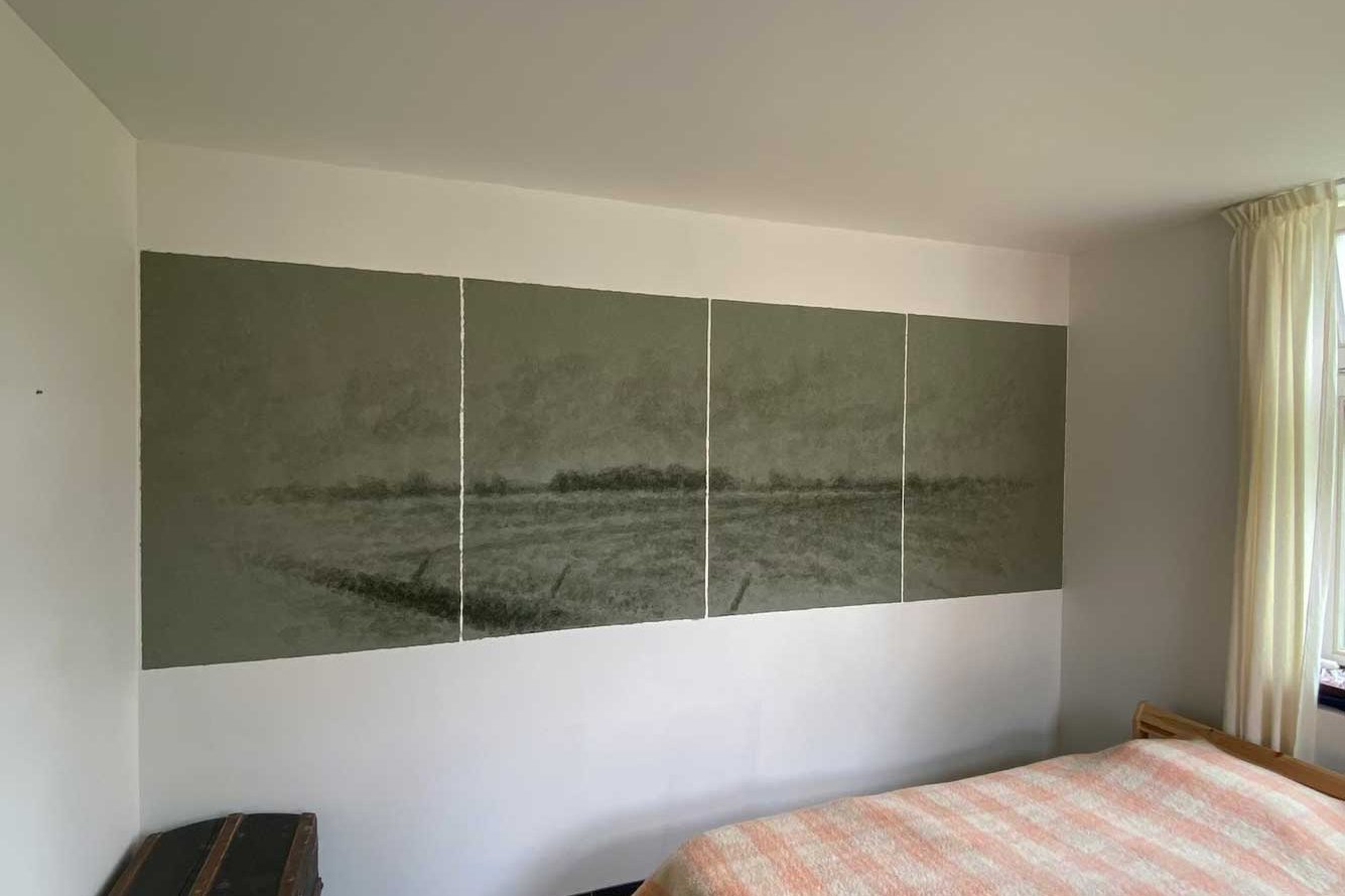 Naast het bos en met uitzicht over de akkers valt het dagelijkse leven samen met het landschap. Het landschap stuurt op een natuurlijke wijze mijn werk. Het beeld ontstaat minder uit het hoofd, meer vanuit het kijken en ervaren. Op mijn wandelingen beleef ik de natuur dagelijks, altijd weer overtuigend en vanzelfsprekend. Maar het is bovenal de focus en rust die de omgeving me geeft. Het prikkelt me elke dag opnieuw om na te denken over het werk; hoe verbeeld ik dit landschap om me heen? Wat betekent het voor me?